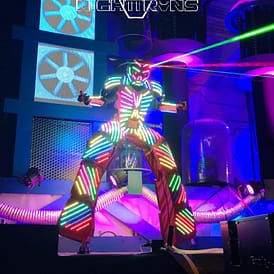 Ob auf großen Events oder in Diskotheken, unsere Nighttrons sind XXL-Roboter, die super tanzen können und mit Laser-Effekten in atemberaubenden Roboter Kostümen für Stimmung sorgen! Die Nighttrons und Cyborg Dancer sorgen für pure Party Action und ziehen jeden Gast in ihren Bann.